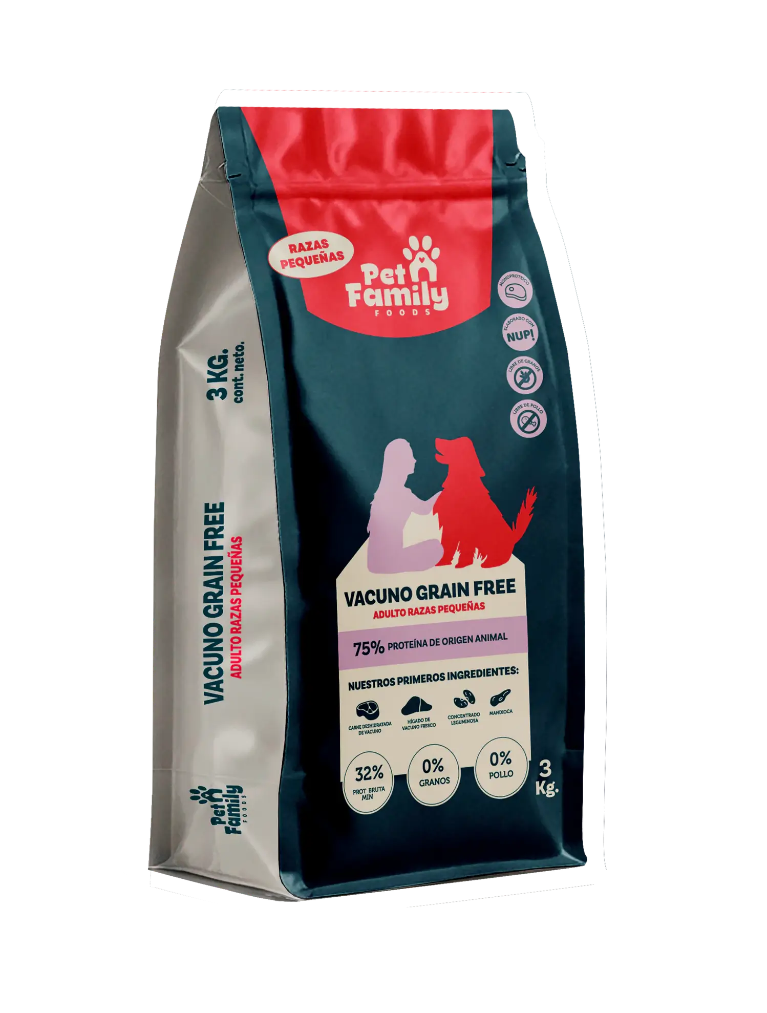 PetFamily Foods Grain Free Razas Pequeñas alimento completo diseñado para perros con sensibilidad digestiva, alergias o intolerancia al pollo, Elaborado con carne fresca, Monoproteico e Hipoalergénico, sin granos y sin pollo, Alimento con probióticos NUP! Pets para mejor digestión.